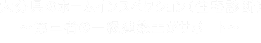 大分県で第三者の一級建築士によるホームインスペクション(住宅診断)、内覧会同行・立会いサービスを行っております。大分市、別府市、由布市、宇佐市、中津市、豊後高田市など県内の一部が対象エリアで、新築・中古の一戸建て・マンション・アパートに一級建築士が対応致します。