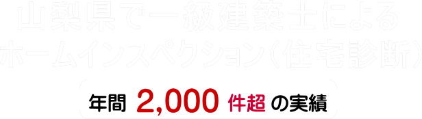 山梨県で第三者の一級建築士によるホームインスペクション(住宅診断)、内覧会同行・立会いサービスを行っております。甲州市・山梨市・南アルプス市・大月市など県内全域が対象エリアで、新築・中古の一戸建て・マンション・アパートに山梨県の一級建築士が対応致します(内容・日程等によって担当者が異なります)。