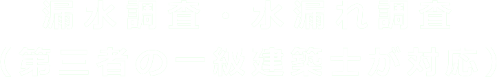 第三者の一級建築士による一戸建て住宅の漏水調査(水漏れ調査)です。原因調査や被害範囲の調査、補修工事中、補修完了後の検査にも対応しております。雨漏り調査も対応しております。