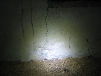 床下へ進入して調査する場合でも、目視・計測・打診は同じです。外部にひび割れがあった場合、床下側の同じ位置にもひび割れがないか確認することを忘れてはなりません。同じ箇所にあれば、貫通クラックの可能性を検討すべきですし、貫通していなくとも同じ箇所にひび割れが生じる原因(例えば荷重が集中している等)を考えて、場合によっては対応を検討すべきです。
